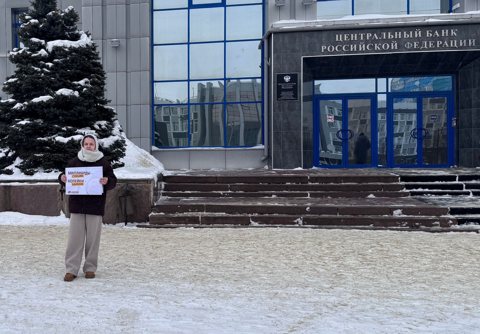 В Липецке активисты Партии СПРАВЕДЛИВАЯ РОССИЯ провели одиночный пикет у здания ЦБ Липецкой области в рамках проекта "Реальная жизнь реальных людей".