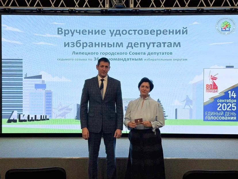 Поздравляем с получением удостоверения депутата Липецкого городского Совета депутатов Тюнину Светлану Валерьевну.