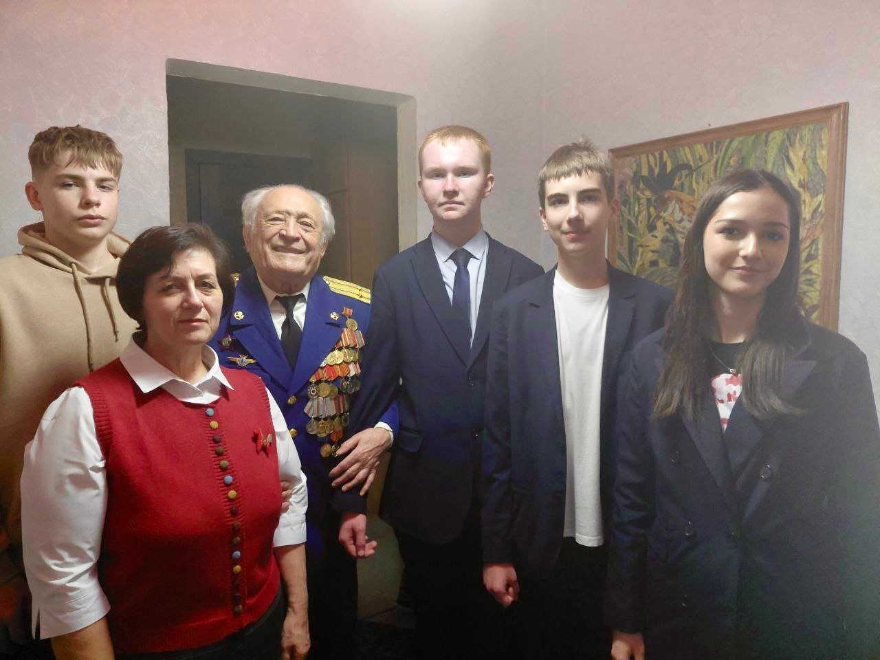 Светлана Валерьевна Тюнина, депутат городского Совета депутатов от СПРАВЕДЛИВОЙ РОССИИ, директор МБОУ "Гимназия №1" г. Липецка со своими учащимися поздравили с Днем защитника Отечества человека-легенду – Василия Степановича Сывороткина.